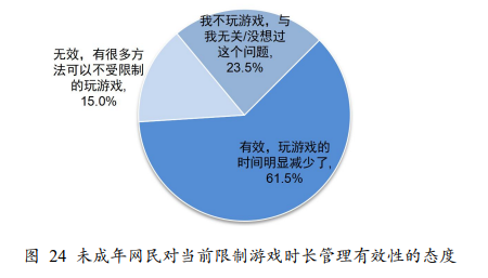 去年年底,共青团中央维护青少年权益部发布的《第5次全国未成年人互联网使用情况调查报告》显示,61.5%的未成年网民认为当前限制游戏时长的管理方式让自己或同学玩游戏的时间明显减少。
