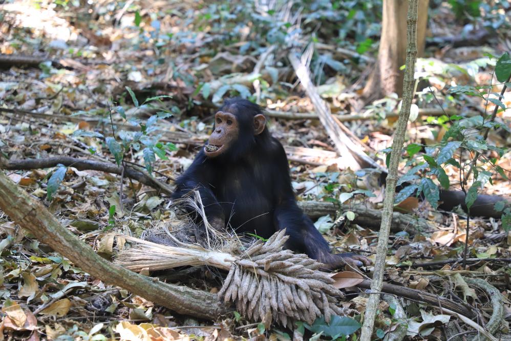 2023年9月2日在坦桑尼亚基戈马的贡贝国家公园拍摄的黑猩猩。新华社记者谢昊摄