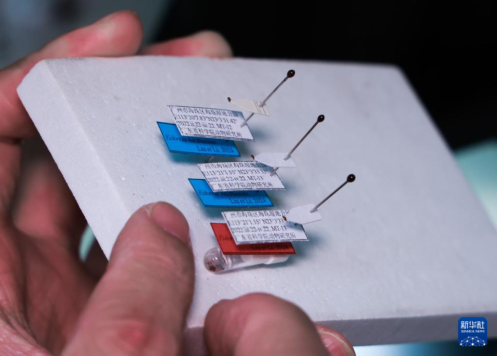 广东省科学院动物研究所科研人员展示海珠微瓢虫标本(2月13日摄)。新华社发
