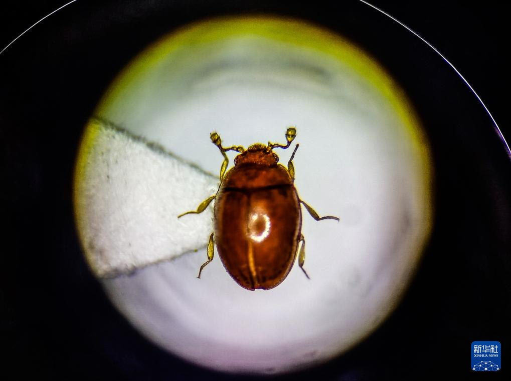 显微镜下的新物种海珠微瓢虫(2月13日摄)。新华社发